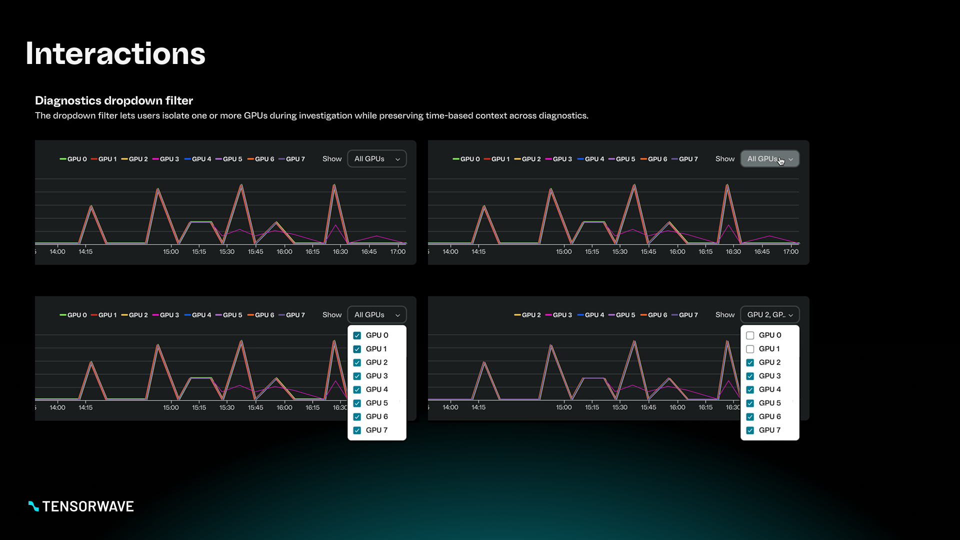 Utilization metrics were designed to support quick comparisons across GPUs, helping users spot imbalance, contention, or runaway behavior.