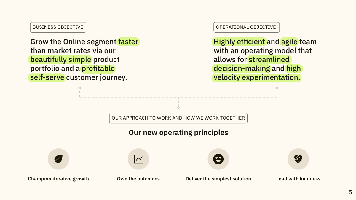 - We then assigned PMs and Designers to each area, ensuring that the product priorities were aligned with company OKRs. Engineering was more complex to align due to specific technology ownership, but we found a workable structure.