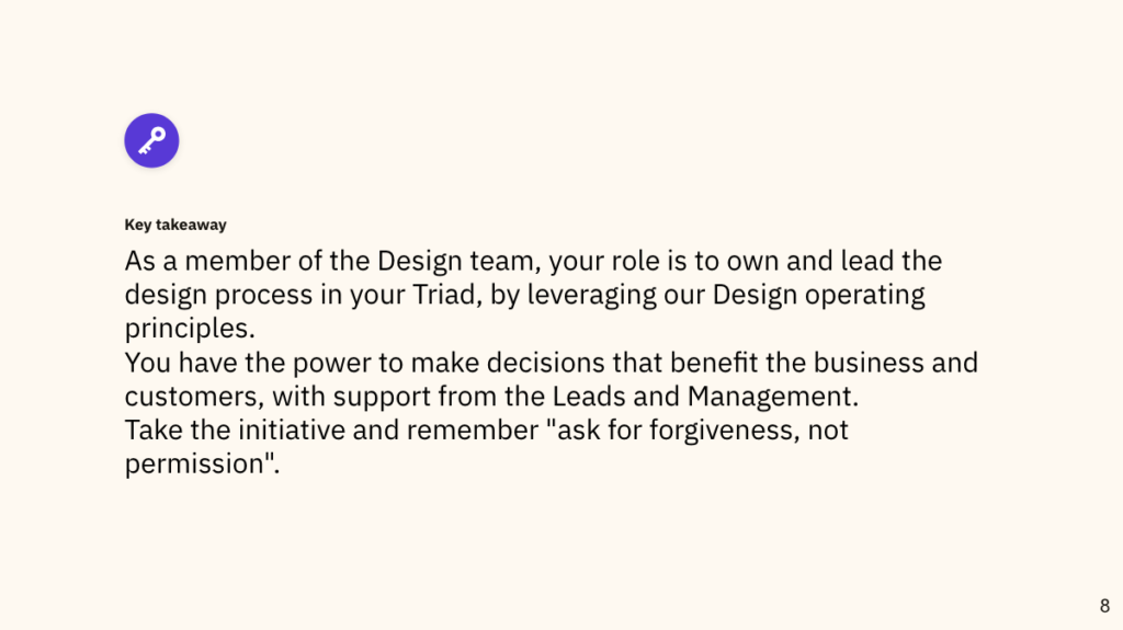 - What Went Well: The triad structure increased efficiency, led to faster project delivery, and gave leadership more time for strategic initiatives. Designers appreciated the autonomy and focus the new structure provided.