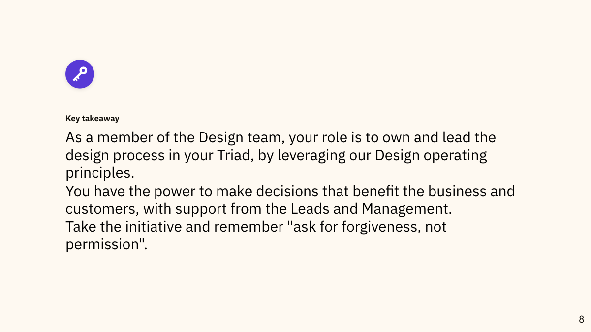 - Qualitatively, the feedback from the team was overwhelmingly positive. Designers appreciated the focus and autonomy the triad model provided, though there was still room for improvement in communication and role clarity.